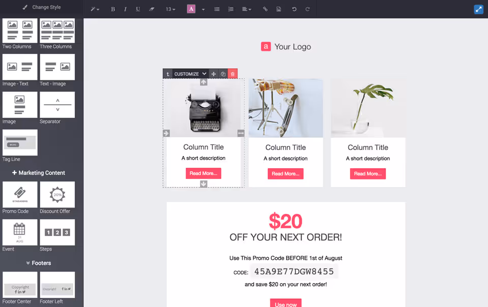 Design professional, engaging emails with full control over content and layout using an easy, intuitive platform.