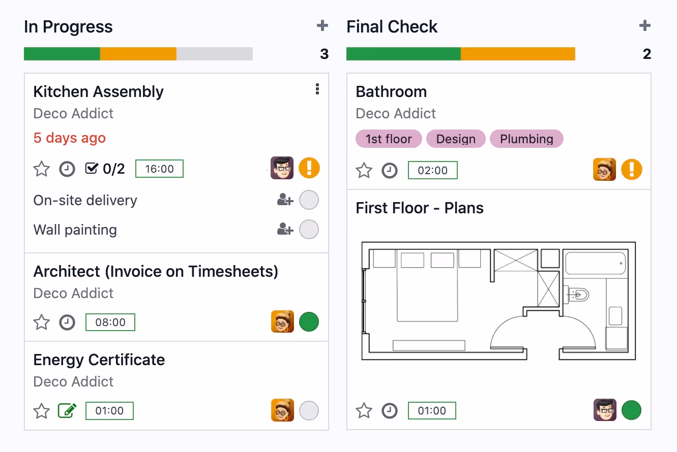 See your tasks laid out visually by stage on the Kanban board. Just drag and drop cards like real sticky notes to update progress and keep your workflow moving smoothly and neatly organized.
